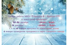 График работы МБОУ "Гимназия № 5 г. Буинска РТ" в новогодние праздники
