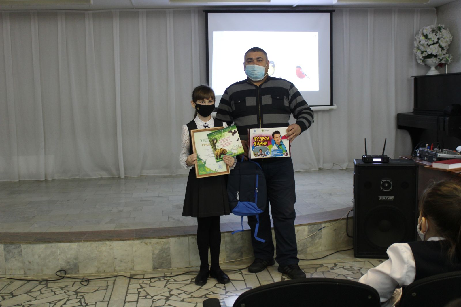 Представители ГПКЗ «Зея Буйлары» вручили заслуженные награды победителю Республиканского конкурса «Я и Красная книга» Орловой Юле за 1 место. Гибадуллин И.И., начальник заказника дал высокую оценку работе нашей ученицы и призвал остальных ребят принимать активное участие в таких конкурсах. Руководители Закирова Г.Ф. и Нуруллаева Р.Я. также были награждены благодарственными письмами и памятными подарками. Поздравляем!!!Представитель ГПКЗ "Зея буйлары" Ильиной А.А. показала обучающимся гимназии презентацию и провела беседу на тему: "День зимующих птиц". Ребятам предложила сделать кормушки. Тщательно объяснила о том, чем можно и нельзя их кормить.