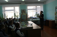 Для участников дополнительного объединения «Юные патриоты» (3 «б» кл. кл. рук. Закирова Г.Ф.) в библиотеке был проведен урок - беседа на тему: «Вы в битве Родину спасали», где ребята познакомились с произведениями поэтов, прославлявших нашу Родину, героях, защищавших ее в страшное время, красоте, любви, преданности к своей Отчизне.