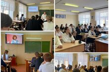 (2 гостя; 2 педагога-наставника; 30 обучающихся). Ребята пообщались с уважаемыми гостями — Зяугарией Хуснетдиновой, председателем Совета ветеранов и пенсионеров Буинского района, и Натальей Михайловной Храмовой, председателем местного отделения Движения Первых. Вместе говорили о важности памяти, о страшных преступлениях нацизма и о нашей общей ответственности за будущее.Особым моментом стало вручение символических подарков — обложек на паспорт — тем ученикам, которым недавно исполнилось 14 лет.