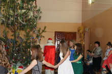 21 декабря в стенах гимназии прошли новогодние утренники среди учащихся начальных классов «Приключения у новогодней елки». На празднике веселили ребят снежинки, снегурки, разбойники, нарядный петушок. В гостях присутствовали и родители, которые остались очень довольны новогодним праздником. Дети исполняли красивые песни про Новый год, танцевали, играли в разные игры.