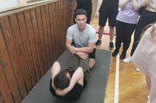 По следующим нормативам : плавание, прыжок в длину, наклон на гимнастической скамье , пресс, отжимание/подтягивание, челночный бег 5х6.