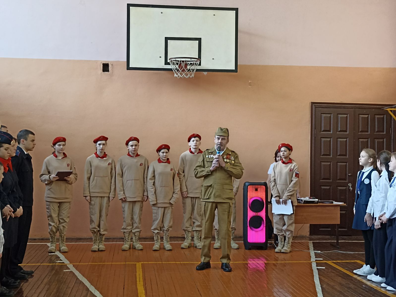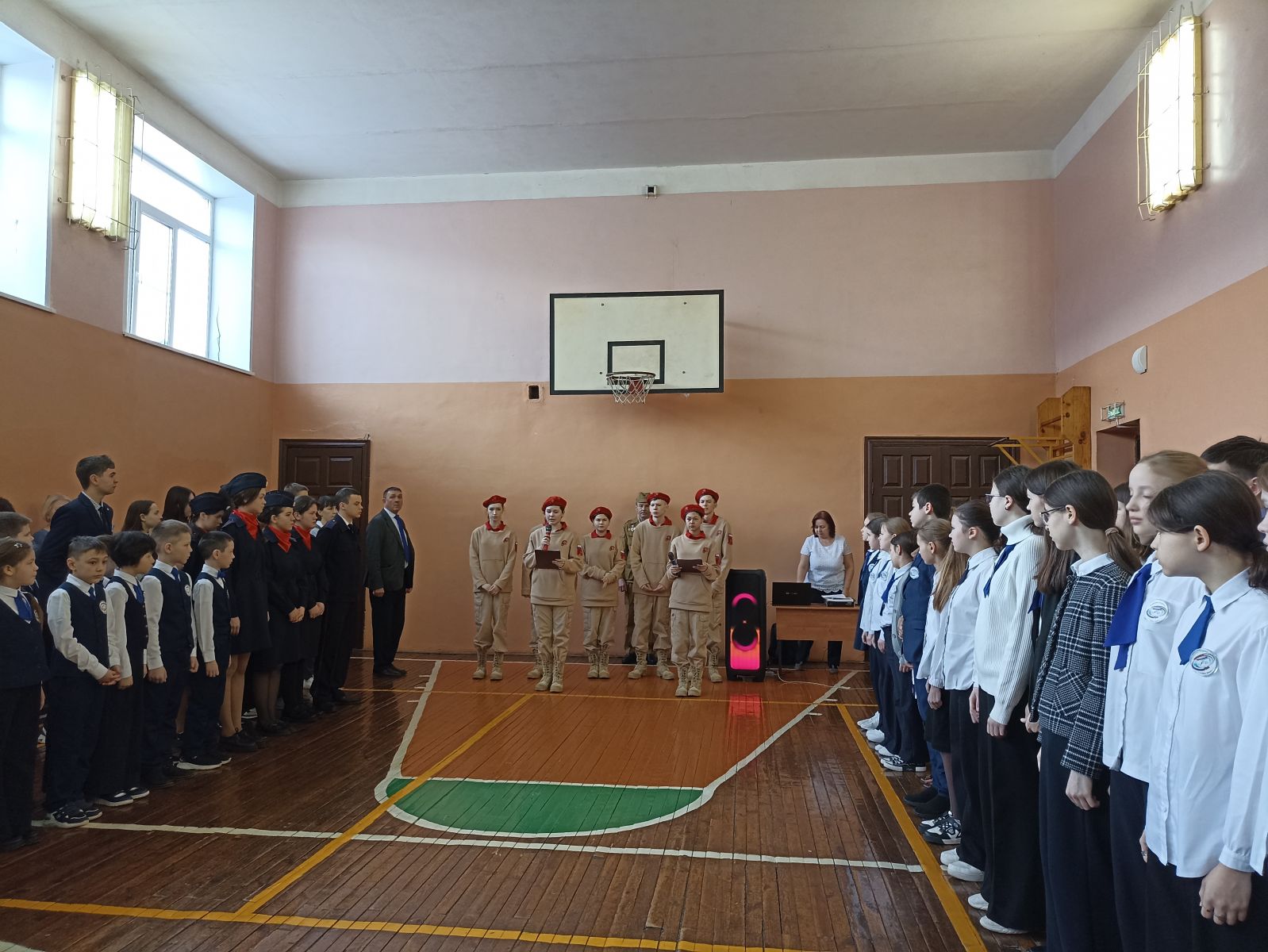 19 февраля прошёл школьный конкурс «Смотр строя и песни», посвященный Дню Защитника Отечества среди 7-8 классов. «Смотр строя и песни» проводится каждый год с целью воспитания дисциплинированности и патриотического духа, что позволяет растить достойное юное поколение.