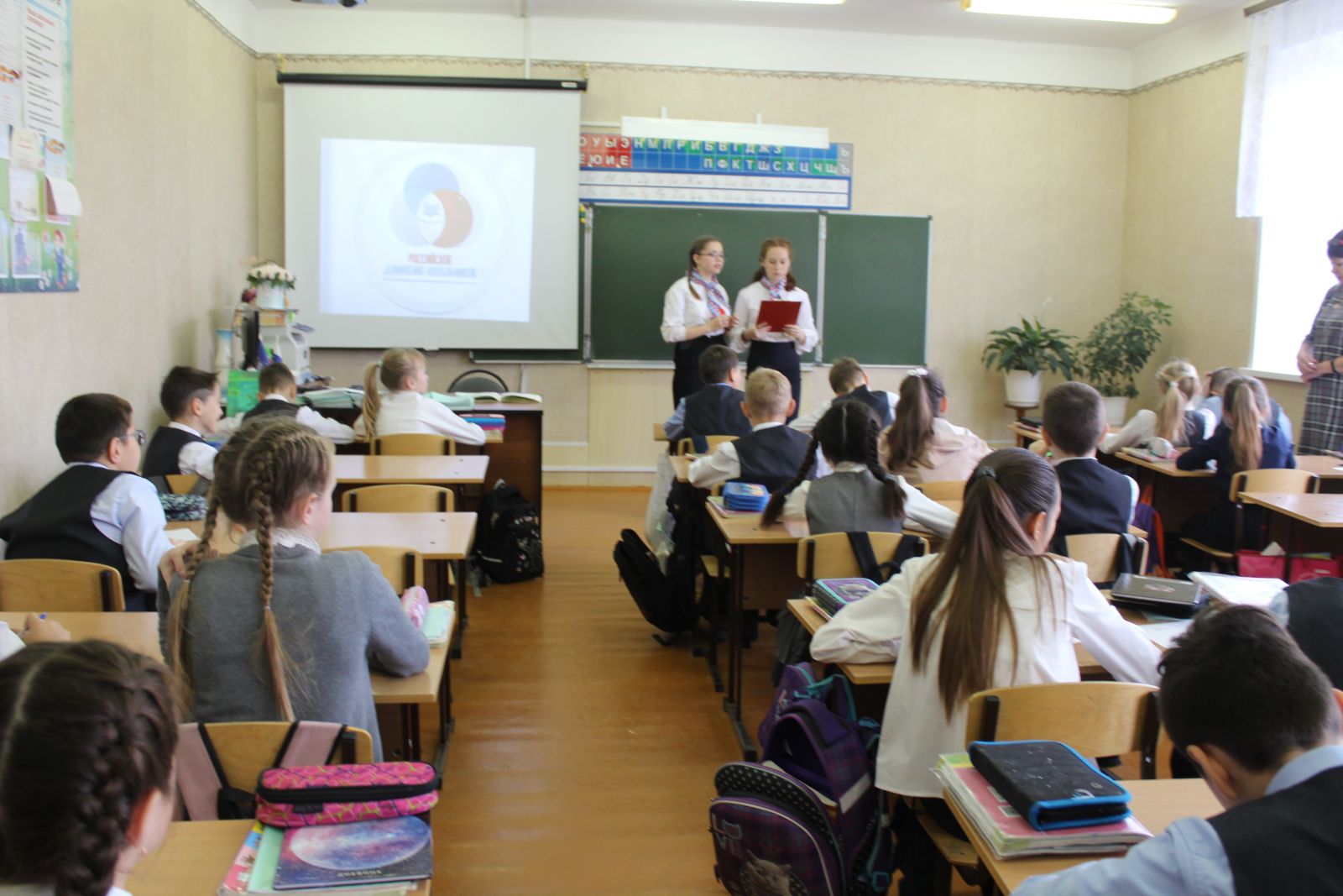 Активисты РДШ рассказали обучающимся о деятельности детской организаций. Объяснили о том, как можно раскрыть свой талант по разным направлениям: творчество, наука, спорт, экология, военно-патриотическое. В ходе урока ребята обсуждали варианты названий, направления, а также мероприятия для нового движения страны. -