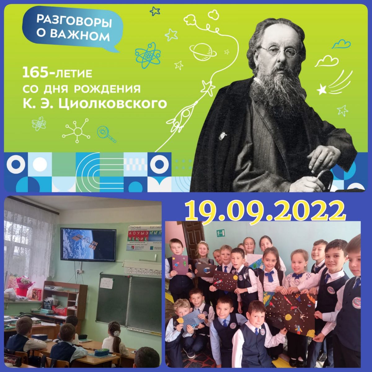 Так каждый понедельник теперь начинается в гимназии. Сразу же после поднятия флага и исполнения гимна – "Разговоры о важном". Тема:"165-летие со дня рождения К. Э. Циолковского"