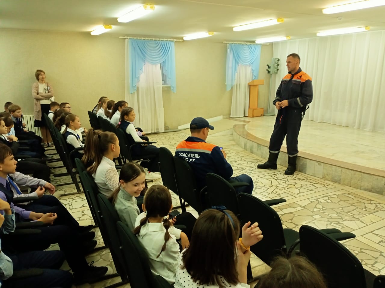 Сегодня сотрудники зонально-поискового отряда 1 г. Буинска ПССРТ при МЧС РТ Мамкин И. Г., Дементьев В. Б., Шарапов Р. Р провели беседу с обучающимися 4,5 и 6 кл. "О безопасности школьников, о правилах поведения на воде, в школе" . В случаи опасности озвучили номера экстренных служб.