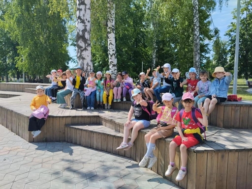 Второй лагерный день начался с зарядки, с завтрака и прогулкой на свежем воздухе.