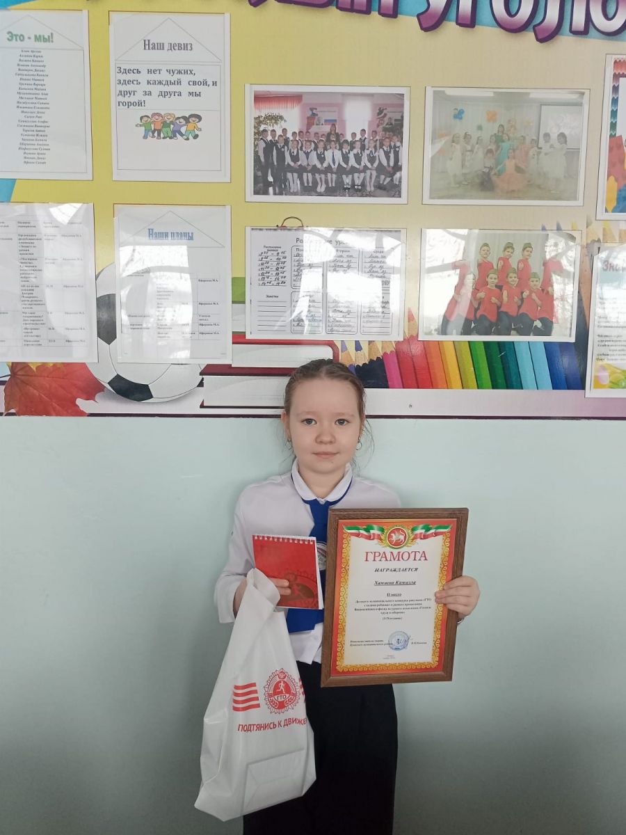 Опубликовано: 22.11.2023Ученица 3 "а"класса, Хамиева Камила, стала призером Детского муниципального конкурса "ГТО глазами детей". Молодец !!! Дальнейших побед и достижений!!!