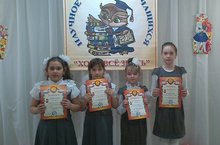 3 место - Сысоева Лия – ученица 2 б класса (рук. Николаева Л.Н.), Хайруллина Ильсия –ученица 2 а класса (рук.Толмачева О.Н.), Кузьмина Екатерина – ученица 1 б класса (рук. Габитова Ф.Ф.), Камалова Ильвира – ученица 4 б класса (рук.Бахтинова Е.В.)