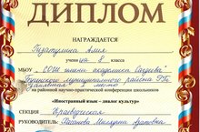 Абзалова Диляра, ученица 11 класса получила диплом II степени (руководитель: учитель английского языка Хасанова М.А.)