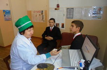 В МБОУ "Верхнелащинская ООШ" ученики 8 класса помогают медперсоналу и техперсоналу проголосовать за Казань.