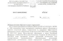 1 июля 2015 года вышло Постановление № 355-п Исполнительного комитета Буинского муниципального района Республики Татарстан "О реорганизации общеобразовательных учреждений".