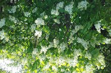 Распустилась белая сирень возле школы.