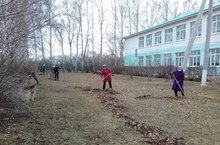 Коллектив школы на субботнике.