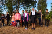Посадка деревьев возле памятника ВОВ.