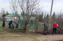 Сотрудники детского сада вышли на субботник по очистке территории от мусора.