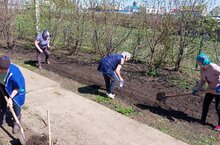 Сотрудники детского сада приняли участие на субботнике по благоустройству и озеленению территории.