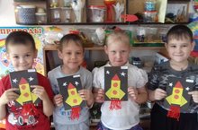 В преддверии Дня космонавтики в старшей группе прошла непосредственно образовательная деятельность по аппликации "Ждут нас быстрые ракеты".