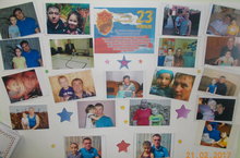 Сердечно поздравляет.В приёмной от всех взрослых и детей сделали для мужчин праздничный стенд с поздравлениями.