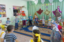 В старшей группе "Буратино" прошло Новогоднее представление «Цирк зажигает огни!» Дети превратились в цирковых артистов: клоунов, силачей, жонглеров и дрессированных собачек. Вместе с клоуном Клёпой, Бабой Ягой и кошечкой Марусей артисты играли, пели песни, танцевали. Конечно же на праздник пришли Дед Мороз и Снегурочка. После представления все артисты получили сладкие подарки.