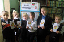 Библиотекарь Леонтьева З.И. для первоклассников провела экскурсию в школьной библиотеке. -