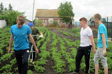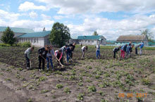 На пришкольном участке каждый день находится работа. Действительно, чтобы осенью получить хороший урожай, надо славно потрудиться сейчас. Ребята, посещающие лагерь, от всей души работают и отдыхают. У нас нет равнодушных людей. -