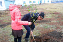 Учащиеся 8 и 9 классов посадили 55 кустов вишни и сливы.