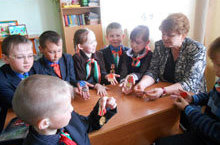 Лежат в шкафу отцовские медали,А ваши дети ходят в детский сад.А мы, признаться, лишь в кино видали,Как бьет в броню осколочный снаряд.Награждение отличившихся в бою воинов орденами и медалями производилось с первых дней Великой Отечественной войны. И эти ордена и медали, как святыня, хранятся во многих домах. Воспитатель ГПД Трофимова Е.И. в начальных классах провела мероприятие «Лежат в шкафу отцовские медали». -