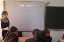 Члены ученического самоуправления (Кудрявцева А., Краснова А.) провели с учащимися 5-7 классов мероприятие на тему: «Дружба – нет ничего красивее».Без дружбы никакое общение между людьми не имеет ценности.Сократ. -