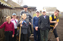 Дружный 5 класс со своим классным руководителем Романовской Н.П. помогают ветеранам труда.