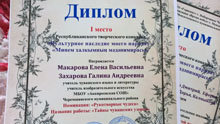 Поздравляем наших учителей Макарову Е.В. и Захарову Г.А. с I местом на Республиканском творческом конкурсе «Культурное наследие моего народа». Они приняли участие в номинации «Рукотворные чудеса» с работой «Тайны чувашских узоров».