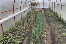 На нашем пришкольном участке есть теплица. Уже высажены томаты, пере, рассады цветов, посеяли капусту. Красиво зазеленел лук.