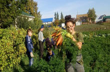 Продолжается уборка на пришкольном участке . Сегодня убрали морковку, свеклу, кабачки. -