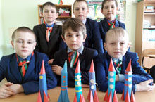 Гулять сегодня некогда,Мы заняты другим:Бумажные ракетыМы дружно мастерим.Четвероклассники смастерили макеты ракет. (учитель Еферова Л.А.) -