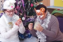 Яңа ел бәйрәменә урман кунаклары -Камыт аяк аю белән, Йомшаккай -куркак куянкай да кунакка килгәннәр.