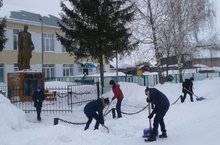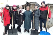 Тимуровская команда учащихся 9 класса посетили ветерана труда Гиниятуллину Таскиру и очистили двор от снега.
