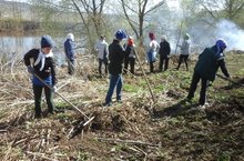 Бүген укытучылар һәм укучылар су буйларын чүп- чардан арындырдылар.