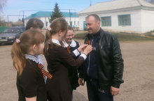 Акция "Георгиевская ленточка"" 23.04.2016 Ученики нашей школы участвовали в акции "Георгиевская ленточка". Они с гордостью прикрепили Георгиевские ленточки к груди прохожих односельчан.
