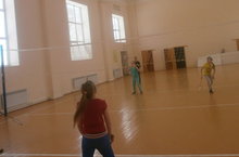 Безнең мәктәп спортзалы каникулда да гөрләп торды. Укучылар волейбол, мини - футбол, бадминтон уйнадылар.