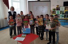 Бертуган әкият язучы Гриммнарның туган көне уңаеннан безнең балалар бакчасына кунакка үзәк китапханәдән хезмәткәрләр килде. -