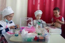 В связи с празднованием Дня медицинского работника и в нашем детском саду были проведены во всех группах тематические беседы о болезнях и мерах профилактики и укрепления здоровья, организованы игровые мероприятия с детьми.