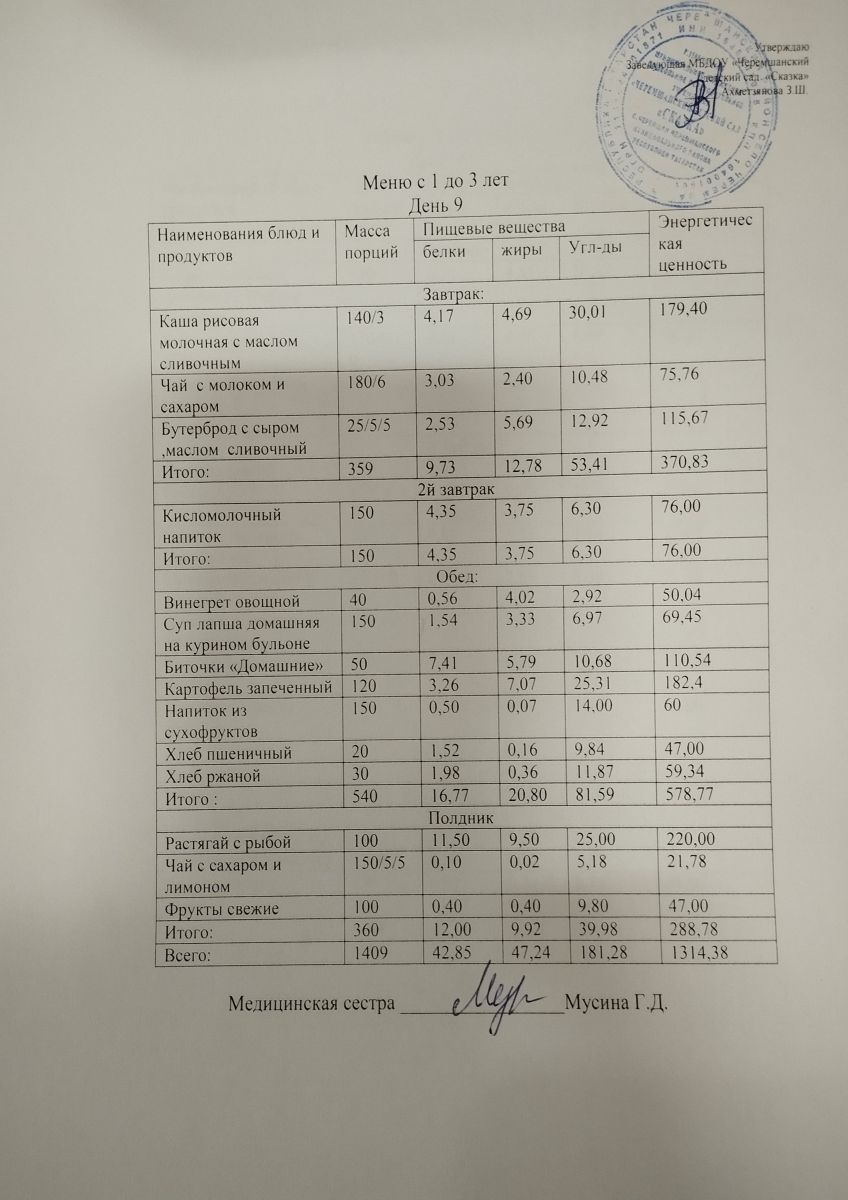 Примерное 10ти дневное меню для детей от 1-3 лет (ОСЕННИЙ ПЕРИОД)