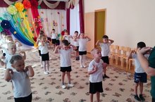 Чтобы развивать у детей интерес к утренней гимнастике, воспитатели используют дополнительные спортивные атрибуты – мячи, флажки, кольца, обручи и мн. др. Воспитанники подготовительной группы выполняют самые разнообразные комплексы утренней гимнастики, могут даже самостоятельно её провести. В конце обязательно выполняют упражнения дыхательной гимнастики, знают много спортивных речевок. -