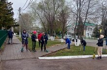 Сотрудники детского сада наводят чистоту перед покраской бардюр