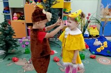 С целью развития устной речи посредством театрализованной деятельности дети средней группы побывали у малышей с драматизацией русской народной сказки "Курочка Ряба"Дети были довольно активные, чувствовали себя комфортно, охотно принимали участие в игре, двигались под музыку, которая усиливала эмоциональное восприятие.