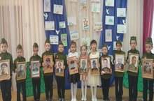 В преддверии празднования Дня Победы в целях патриотического воспитания дошкольников, любви к своей Родине и уважения к людям, которые ковали Победу, формирования положительного эмоционального подъема были оформлены все группы фотографиями военных лет, макетом вечного огня, символикой праздника. Дети читали стихи, пели песни, танцевали. Мероприятия начинались с минуты молчания