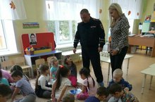 Гульфия Харисовна из отдела профилактики ГБУ города Нурлата и Рамис Рясихович - инспектор ГИБДД села Черемшан, провели для детей нашего детского сада беседу по профилактике безопасного поведения на дорогах.