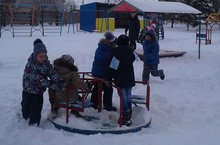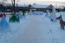 Коллективның тырыш хезмәте белән балалар бакчасы территориясенә кардан сыннар ясалды. Кар сыннарының күбесе балаларга таныш экият персонажлары. Бакчага керү өлешендә матур булып буялган чыршылар торалар. Ә чыршылар арсында төрле җәнлекләр: куян, аю, төлке һ.б. Ә бакчасын түрендә Кыш бабай белән Кар кызы балаларны тау шуарга чакыралар төсле. Яңа елның матурлыгы сыннарда һәм бизәүләрдәдер, мөгаен.
