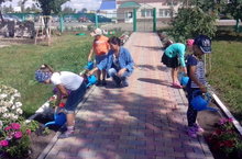 Безнең балалар бакчасында бик матур бакча бар. Җәй көне ул аеруча ямьле. Яз көне утырткан чәчәкләр җәйгә күзләрне шатландырып чәчәк аталар. Чәчәкле бакчаның шундый матур булуында балаларның да өлеше бар. Балалар тәрбиячеләр белән бергә чәчәкләргә су сибә. Шул рәвешле балалар бакчаның чәчәк атуын тәэмин итәләр.