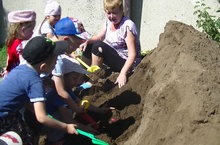 15 август- Археологлар көне. Шул уңайдан җәйге эш планына нигезләнеп бакчабызда "Бар һөнәрләр дә яхшы" атналыгы ( 14 августтан - 18 августка кадәр) үткәрелде. Балалар комлыкта казу эшләре белән шөгылләнделәр. Аларга тәрбияче Гыйләҗева Г.М. белән алдан күмеп куелган әйберләрне казып эзләп табу бик охшады. Археолог кем ул икәнен дә искә төшереп ныгыттылар.